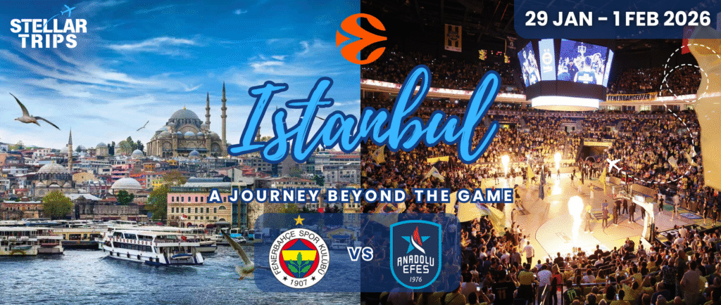 From the spice bazaars to the shores of the Bosphorus, and from ancient mosques to roaring arenas, every moment in Istanbul is unforgettable. This is more than a trip, it’s a full immersion into one of the world’s most passionate basketball cultures.